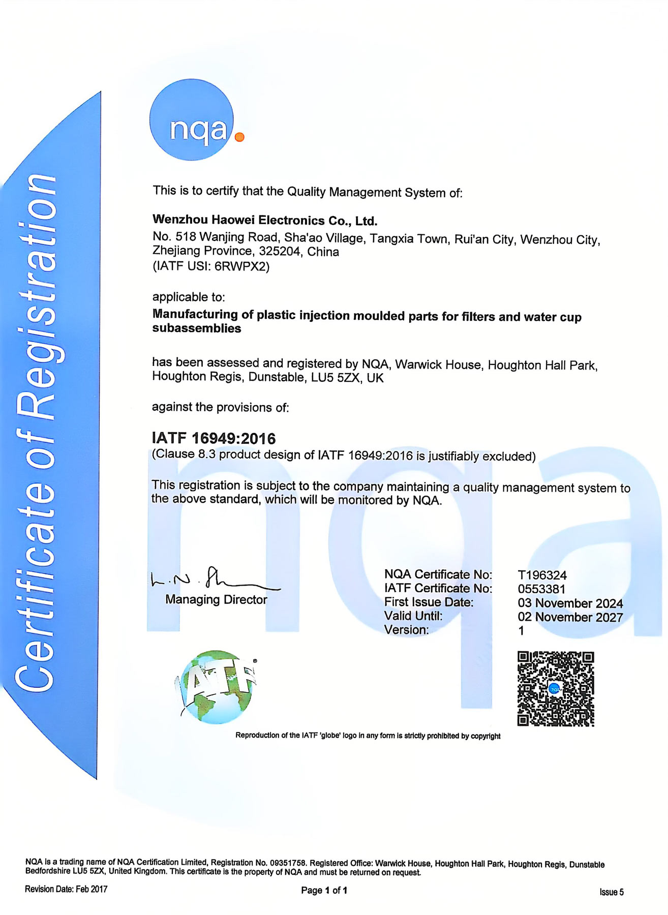 Wenzhou Haowei Electronics Co.,LTD is located in Zhejiang, Ruian with convenient transportation. Air port, highway, railway, national road are close. Company was built in the 1987s. Our main products are Plastic fuel filter, oil filter and air dryer, filter plastic components, filter cup ,pan cover and oil pan. We have complete range of products,advanced equipments and strong technical capability. Meanwhile, we have automatic injection workshop, independent mold workshop, complete set of testing equipment and excellent R & D team.